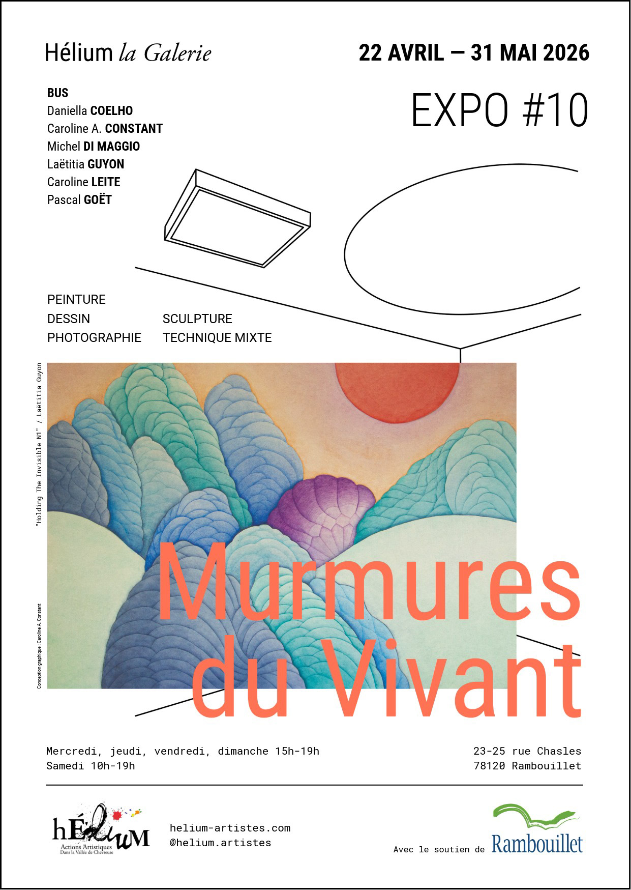 Aux côtés de 6 autres artistes de l’association Hélium : BUS, Daniela Coelho, Michel Di Maggio, Laetitia Guyon, Caroline Leite, Pascal Goët.